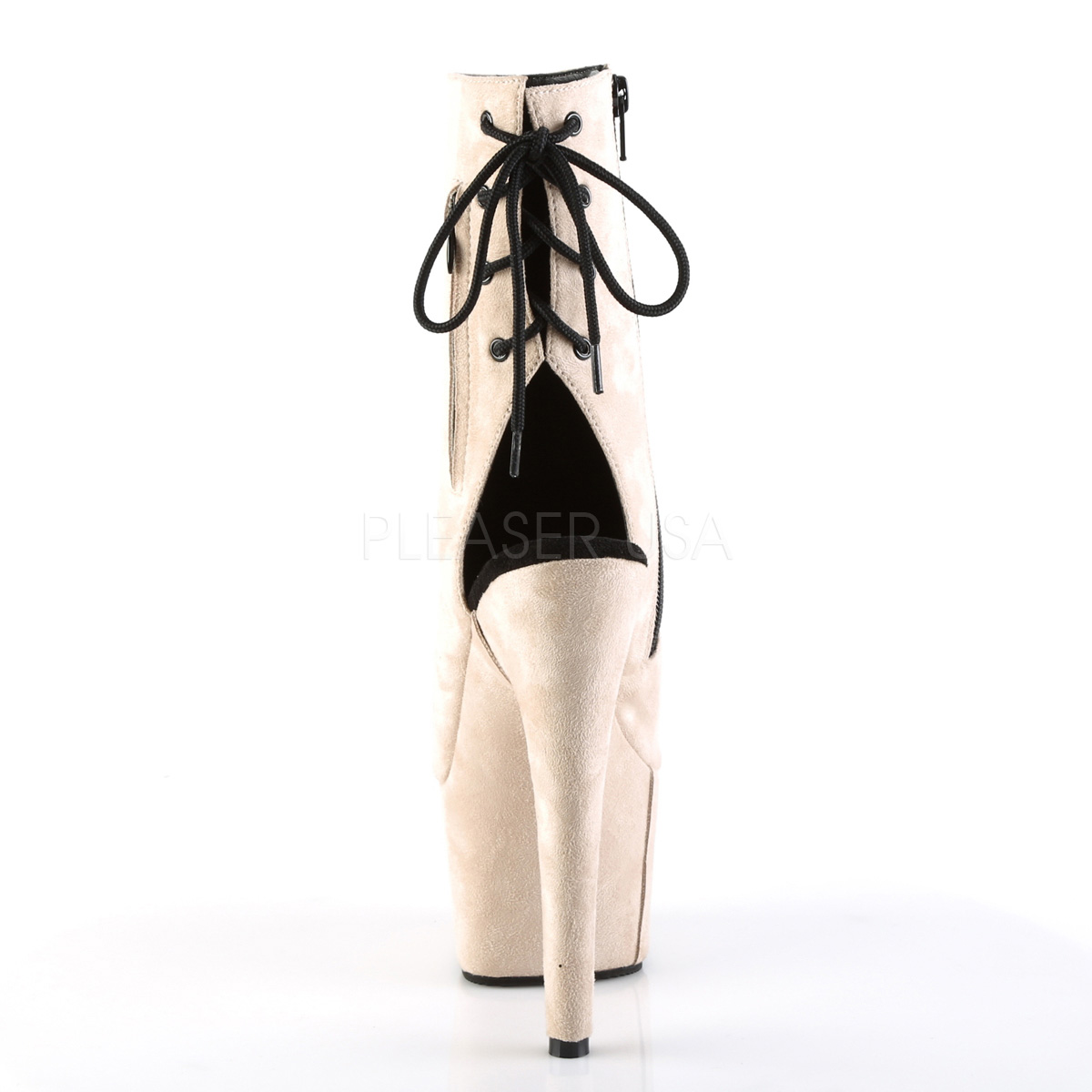 7 インチ (178 mm) かかと、2 3/4 インチ (70 mm) プラットフォーム オープンつま先またはかかとバックレース アップ ブーツ隠しファスナー付きポケット ・ ファスナー内の完全に包まれたプラットフォーム底 w/