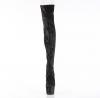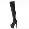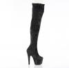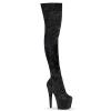7インチ(178mm)ヒール、2 3/4インチ(70mm)プラットフォームストレッチサイハイブーツ、ストレッチできらめく生地アッパーと完全にラップされたマッチングプラットフォームボトム、フルレングスのインナーサイドジッパーが特徴