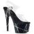 スチレットヒール 7 インチ (17.8 cm)、2 3/4 インチ (7 cm) 足首ストラップ サンダル スティレット ヒールとプラットフォーム内模擬 PVC UV 反応性炎の特徴