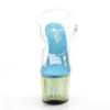 7 インチ (17.8 cm) スチレットヒール、2 3/4 インチ (7 cm) 彩色プラットフォーム アンクルス トラップ サンダル