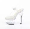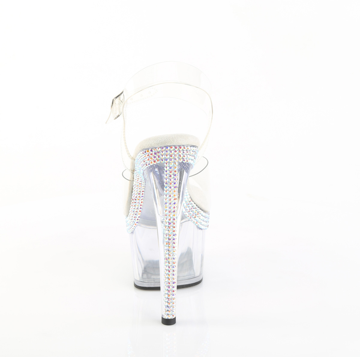7インチ(178mm)ヒール、2 3/4インチ(70mm)プラットフォームアンクルストラップサンダル、プラットフォームトップエッジとヒールにABラインストーンを複数列にあしらった