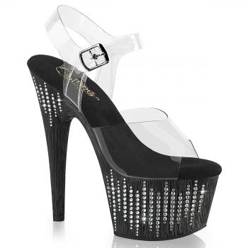 7インチ(178mm)ヒール、2 3/4インチ(70mm)プラットフォームアンクルストラップサンダル、プラットフォームとヒールの外側にラインストーンの滝模様のデザインが特徴