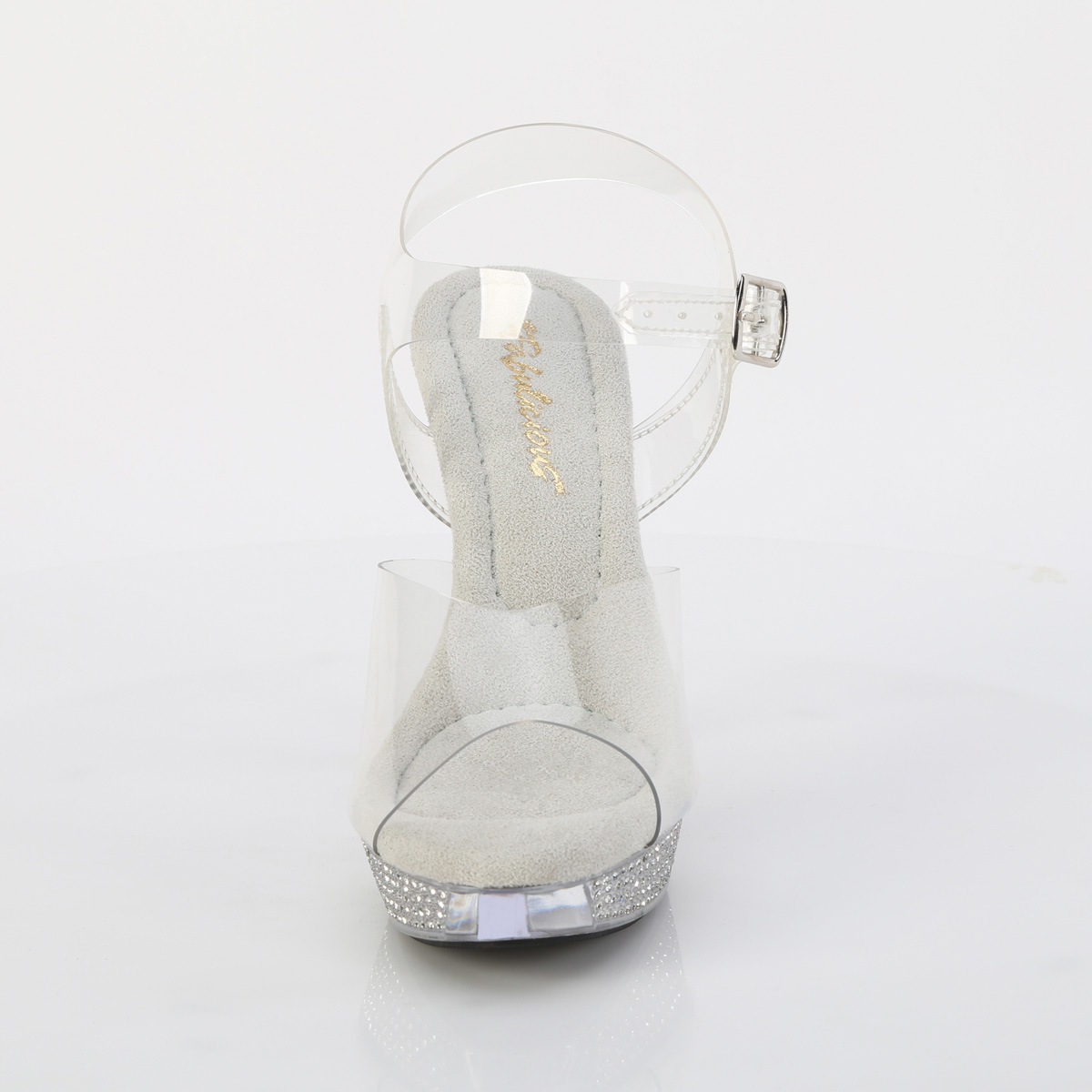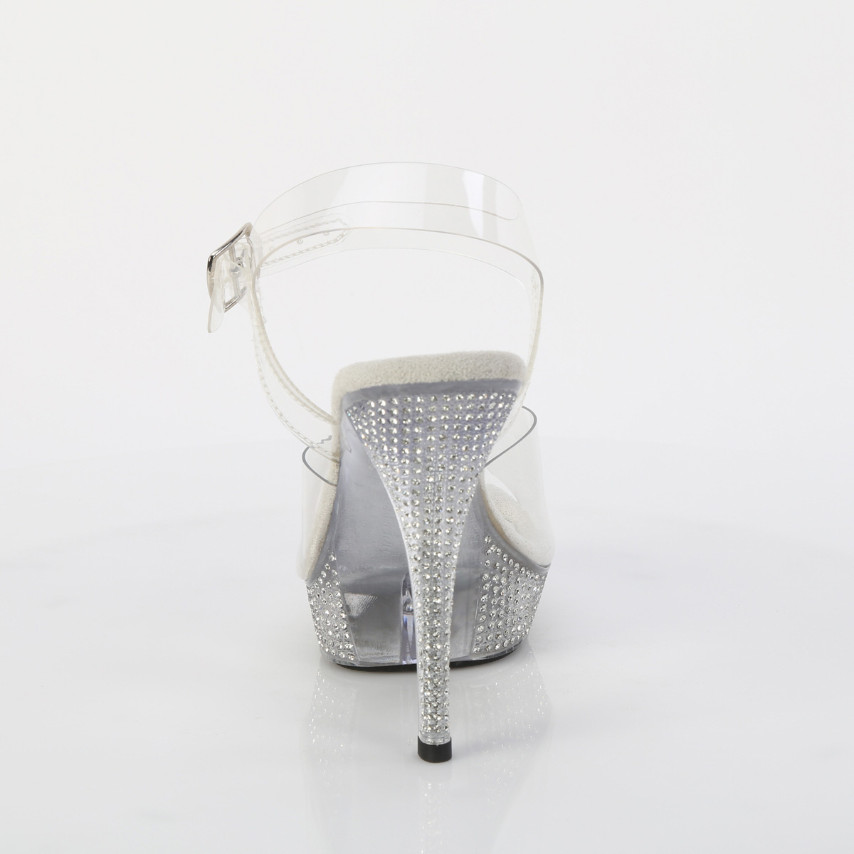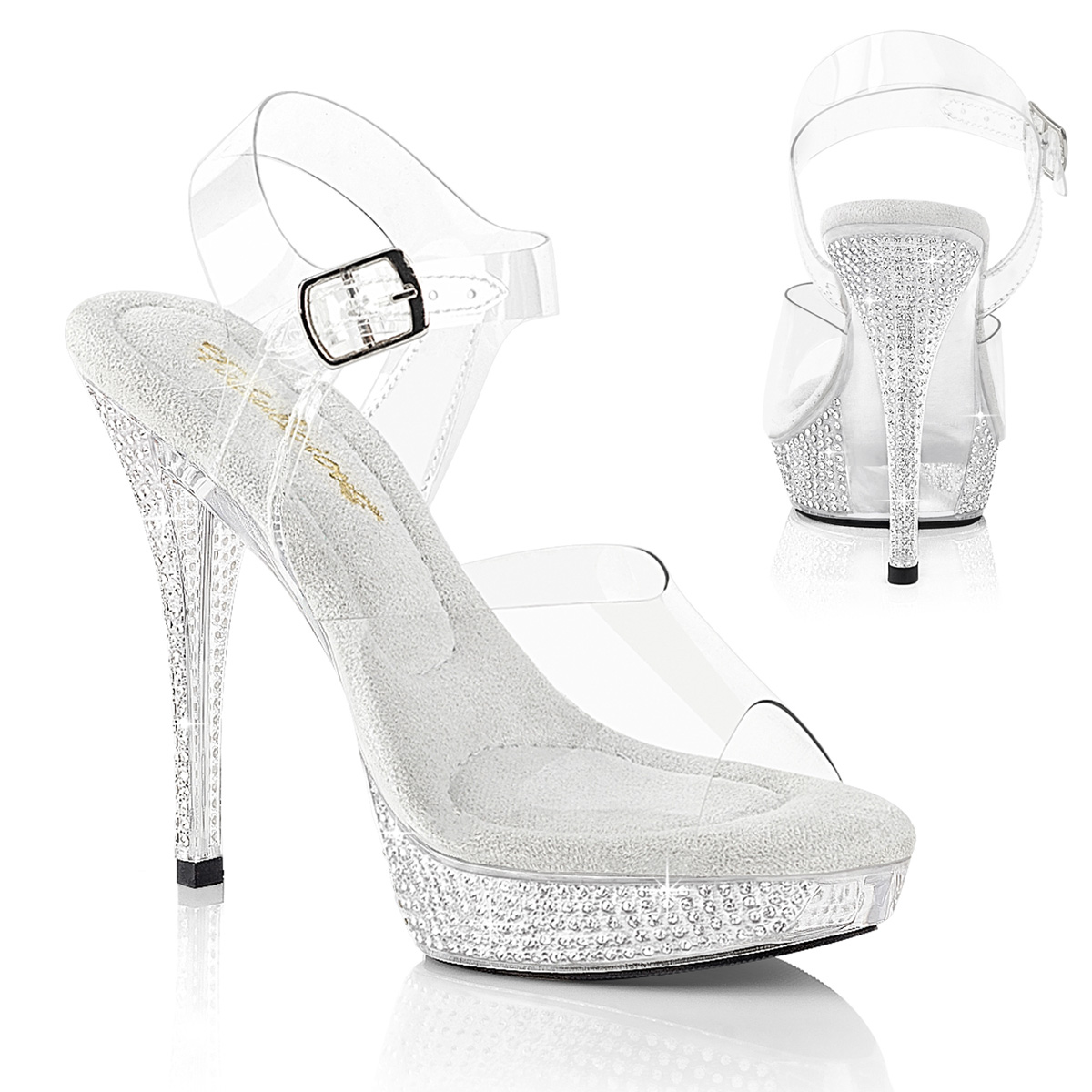 5インチ(127mm)ヒール、1インチ(25mm)プラットフォームアンクルストラップサンダル、ラインストーン装飾のプラットフォーム底面特徴