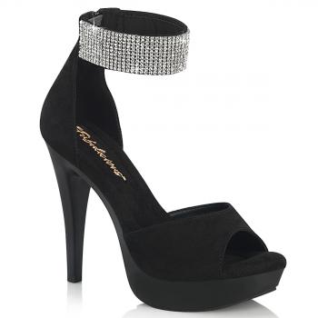 5インチ(127mm)ヒール、1インチインチ(25mm)プラットフォームオープントゥクローズドバックサンダル、ラインストーン装飾アンクルストラップ、バックジップクロージャー