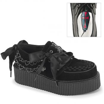 2インチ(51mm)プラットフォームサイドレースアップオックスフォードクリーパー。フロントにジッパー付き、『D』チャーム、ハートチェーン、バックリウレースのディテール付き