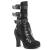 4 インチ (10.2 cm) ヒール ブロック、3/4 インチ (1.9 cm) プラットフォーム 2 トーン コルセット スタイル足首ブート トリプルと座のストラップとレース オーバーレイの詳細、内側ジッパー