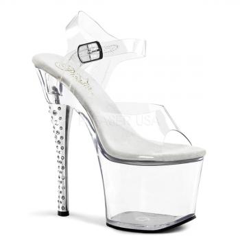 スチレットヒール 7 インチ (17.8 cm)、3 1/4 インチ (8.3 cm) プラットフォーム オープンつま先・ ヒール アンクルス トラップ サンダル ラインス トーンの埋め込みかかとの特徴