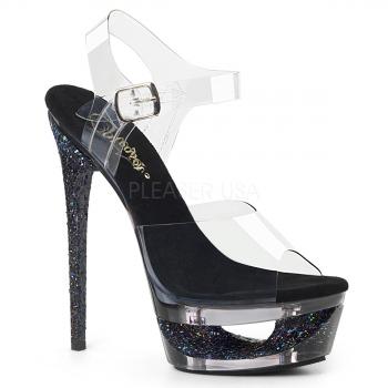 6 1/2 インチ (165 mm) かかと、プラットフォーム アンクルス トラップ サンダル彩色プラットフォームとヒール ・ プラットフォーム カットアウト領域全体をカバー ホログラムのきらめき 1 3/4 インチ (44 mm) カット