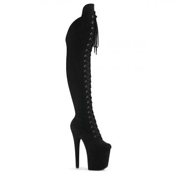 8インチ(200mm)ヒール、4インチ(100mm)プラットフォームレースアップフロントスラントトップ、膝越しブーツ、プラットフォームボトムは完全にラップ、内側2/3ジップクローズ