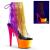 8"(20.3cm) かかと、4"(10.2cm) プラットフォーム オープンつま先またはかかとバックレース アップ足首ブート 4 層クロムメッキを特色シミュレート色とりどりラインス トーン フリンジと UV ブラック ライト反応色とりどりのプラットフォーム下、ジッパー閉鎖中