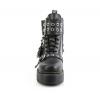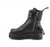 2インチ(51mm)の積み重ねたプラットフォーム8アイレットレースアップコンバットブーツ。ダブルグロメット上部バックルストラップ(吊り下げ式取り外し可能な背中ストラップ)、取り外し可能なパフィーハートボンデージチャーム、下部グロメットストラップのディテール、内側金属製ジップクローズ