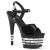 7 インチ (178 mm) スカラップかかと、3 1/4 インチ (83 mm) プラットフォーム アンクルス トラップ サンダル ヒールとプラットフォームの外側にちりばめられた複数サイズのラインス トーンの特徴