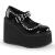 5 1/2 インチ (14 cm) ウェッジ プラットフォーム 3 アイレット半編み上げフロント足首ブーティー特徴側カットアウト デザインと包み込むピラミッド スタッズ ディテール バックルス トラップ